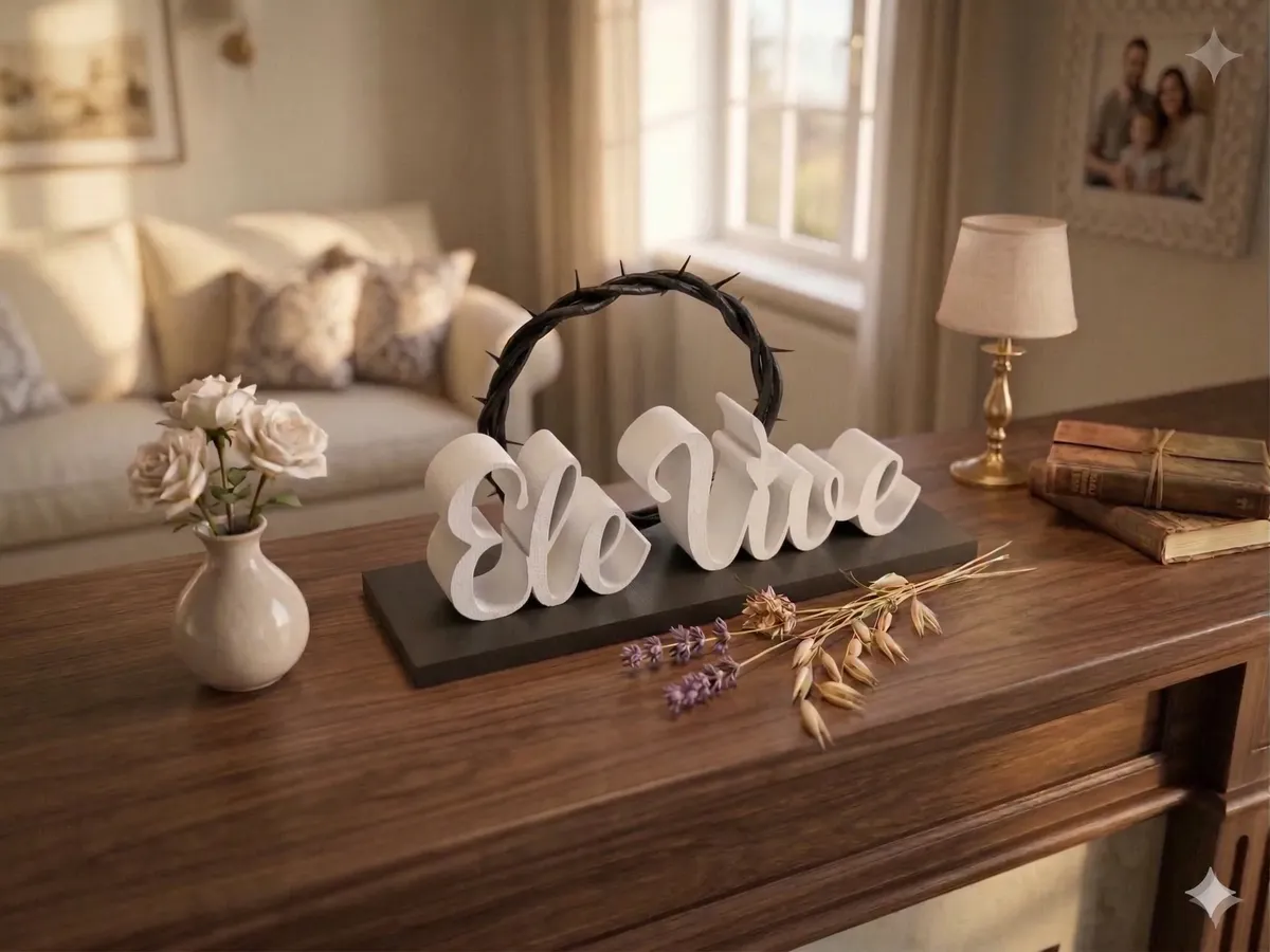 Eleve a decoração do seu ambiente com uma peça que une sofisticação moderna e um profundo significado espiritual. Esta versão exclusiva da escultura “Ele Vive” apresenta um contraste marcante entre o preto absoluto e o branco puro, ideal para decorações contemporâneas, minimalistas e industriais.