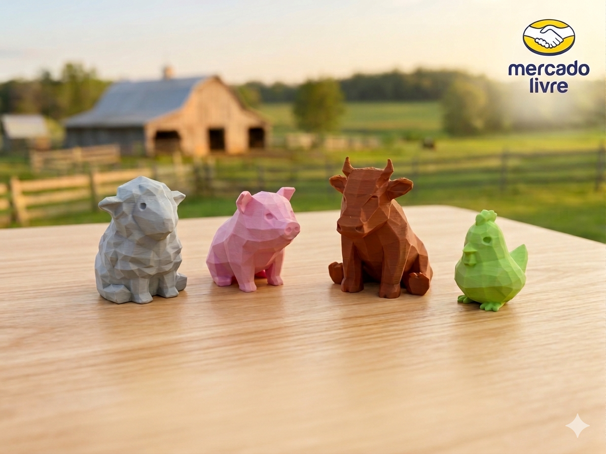 Leve para casa um pedacinho do campo com este kit exclusivo de 4 animais de fazenda, produzidos com a mais moderna tecnologia de impressão 3D! Com um design minimalista e moderno em estilo Low Poly (geométrico), eles são perfeitos para decorar, colecionar ou presentear.